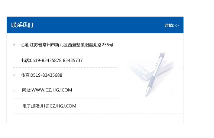 傳真:0519-83435688    郵編:213135    網址:WWW.czjhgj_com.xtjzjl.com    電子郵箱:JH@czjhgj_com.xtjzjl.com